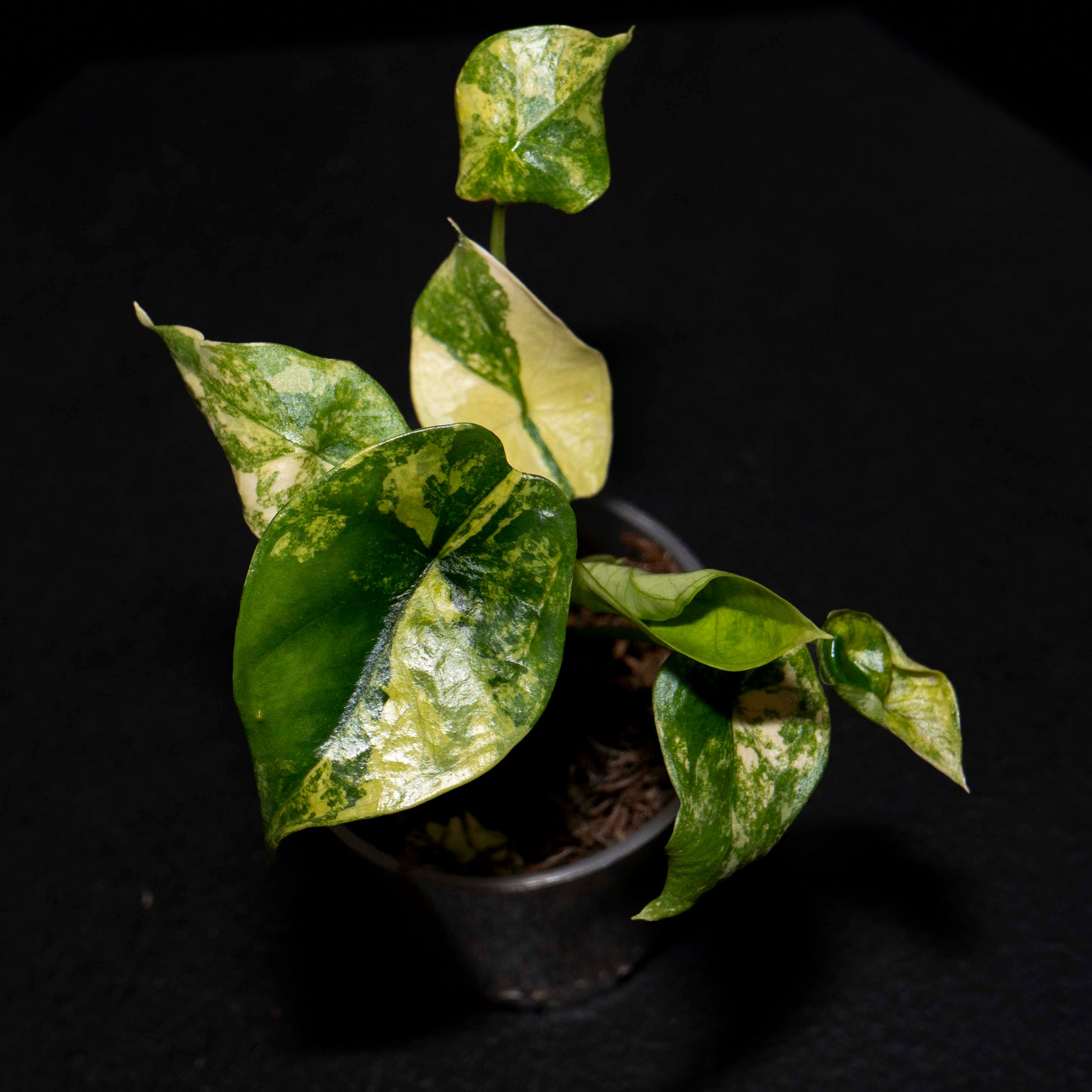 The Alocasia Dragon Scale Aurea is a true collector’s treasure! Its iconic green scale-like leaves are dramatically streaked with golden variegation, creating a one-of-a-kind contrast.